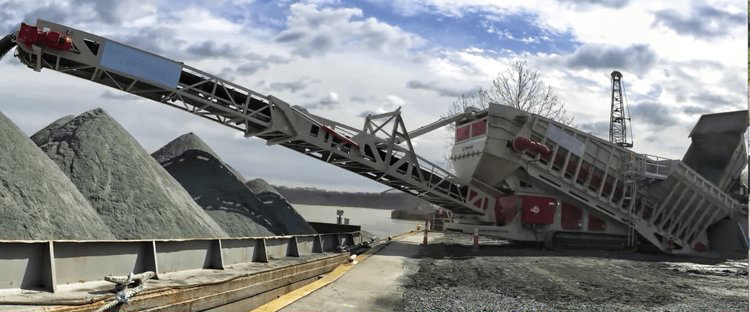 履帶式堆取料機采用新技術,極大地提高工作效率,降低勞動強度,減少貨物損傷,縮短車船、碼頭的裝卸時間。是企業降低生產成本,提高效率和產品質量的有效設備??梢园迅劭冢旱V,砂石礦和物流中心,大型散貨存放地的散裝物料直接輸送到傳輸帶上并輸送到大型卡車上,裝車效率高,速度快,每小時可以裝料800噸以上。工作動力采用柴油機,行走為液壓馬達行走。履帶行走使用不同的復雜路況,移動快捷,方便。液壓先導操作簡單,靈活。