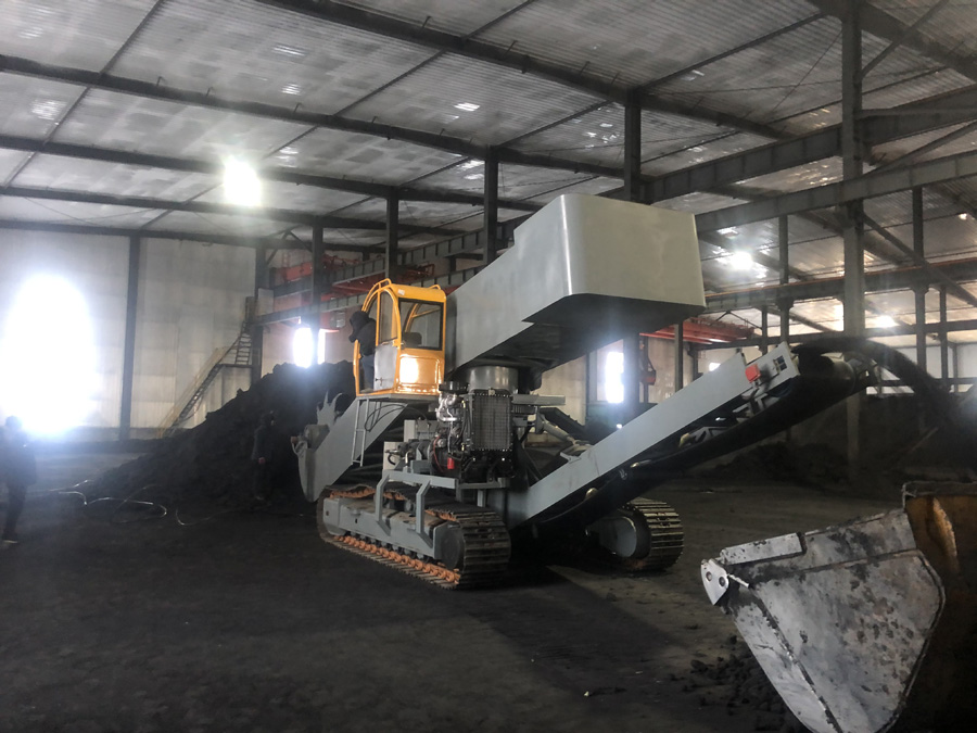 1.大型履帶移動堆取料機可用于礦山碎石料、沙土以及糧食等裝車操作,采用自身發動機帶動的液壓螺旋系統進料,利用大小皮帶將料裝車,大小皮帶的伸縮旋轉也通過液壓系統控制,同時可控制履帶自行行走,無需外部電源,移動靈活,作業面積大、效率高;